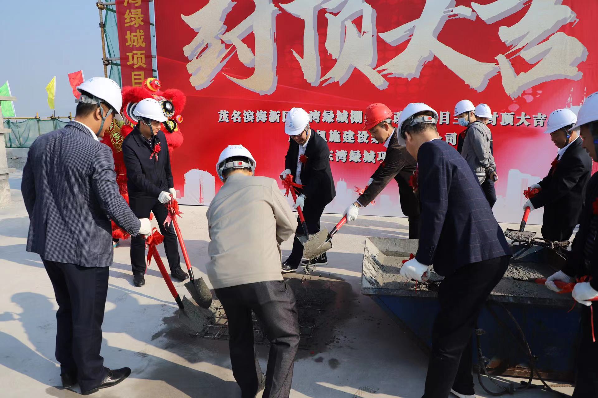 12月10日上午,伴隨著最后一方混凝土澆筑完成,由茂名濱海發展集團下屬子公司城投公司承建的茂名濱海新區東灣綠城棚戶區項目主體結構順利封頂。這標志著茂名濱海新區推動民生事業,改善人居環境,開展新型城鎮化工作又邁新階段。茂名濱海新區黨工委委員、管委會副主任寧雙林;區經發局、區財政國資局、區規建局、區自然資源分局主要領導;電城鎮鎮政府有關領導;茂名濱海發展集團班子成員及中層干部等有關人員出席參加頂儀式。