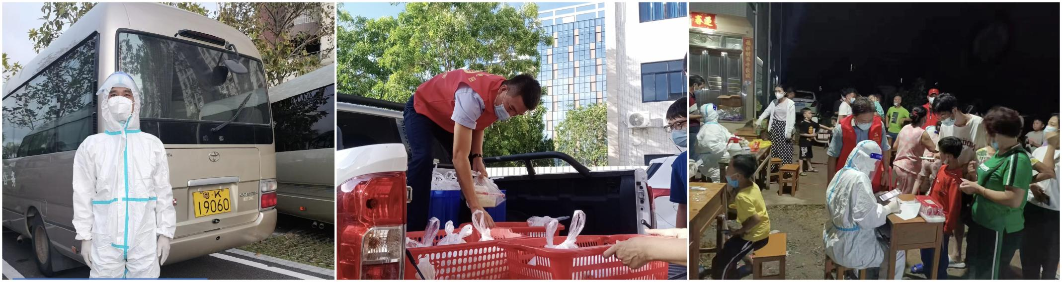 (中:集團下屬綜合服務公司蔡志英同志第一時間為醫護人員配送餐食)