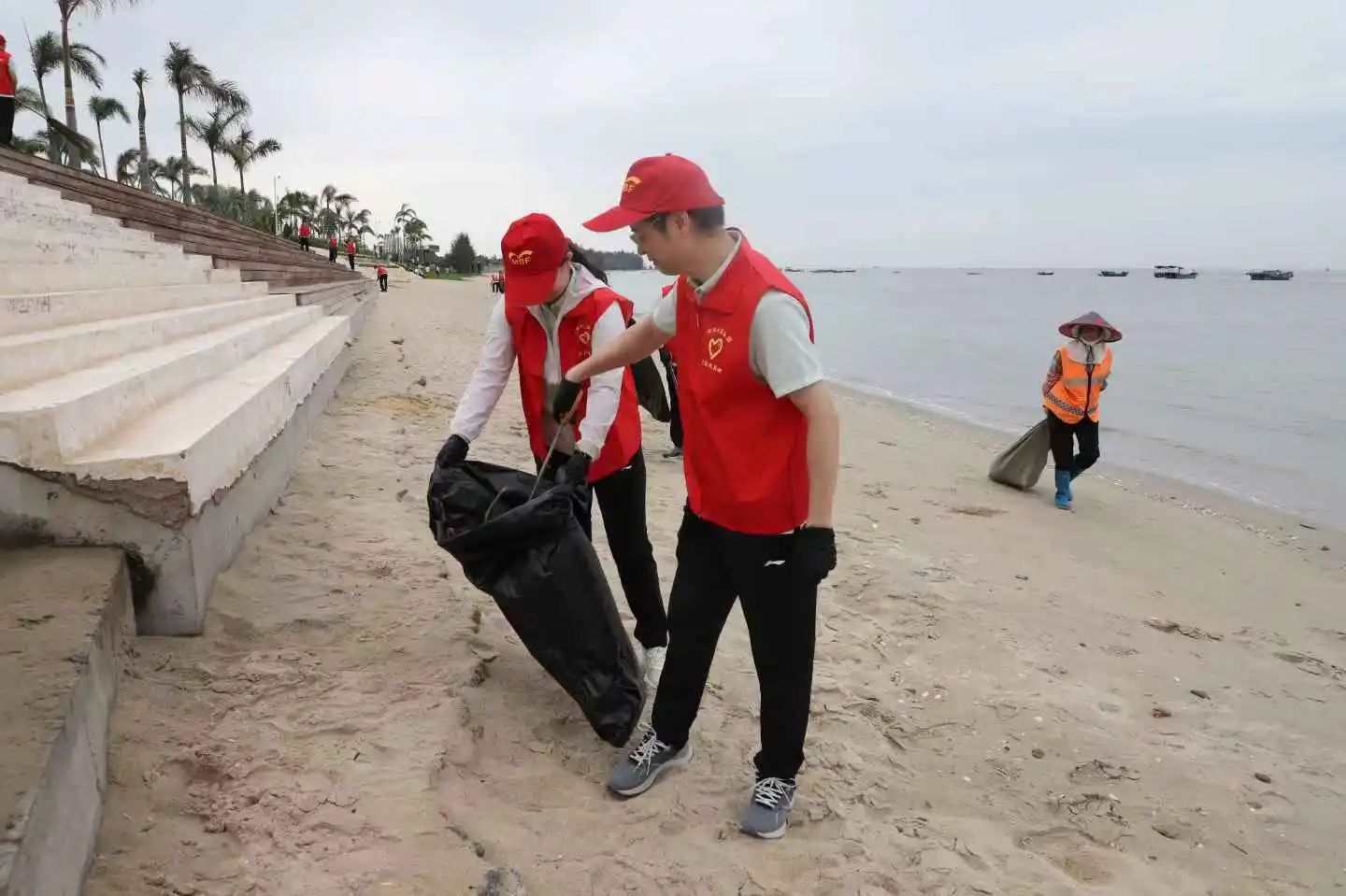 活動過程中,志愿者們身著統一服裝,手持垃圾夾、環保袋等工具,分組對海岸線進行“地毯式”清理。從塑料瓶、廢棄漁網到煙頭、食品包裝袋,志愿者們不放過任何一處衛生死角,躬身彎腰間盡顯責任擔當。活動中,集團領導班子身先士卒,青年黨員、團員沖鋒在前,大家默契配合,將撿拾的垃圾分類裝袋并運送至指定處理點。經過1個多小時的努力,海岸線煥然一新。在活動過程中,志愿者們也對外地前來游玩的游客進行宣傳和提醒,進一步提高了游客們愛護海洋環境的意識。